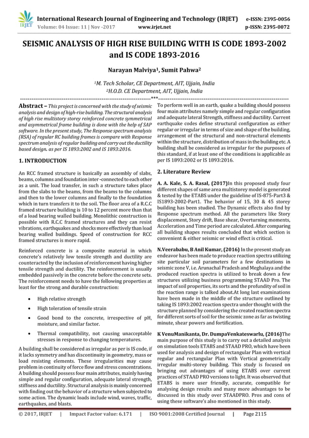 (PDF) Seismic Analysis of High Rise Building with is Code 1893: A Review