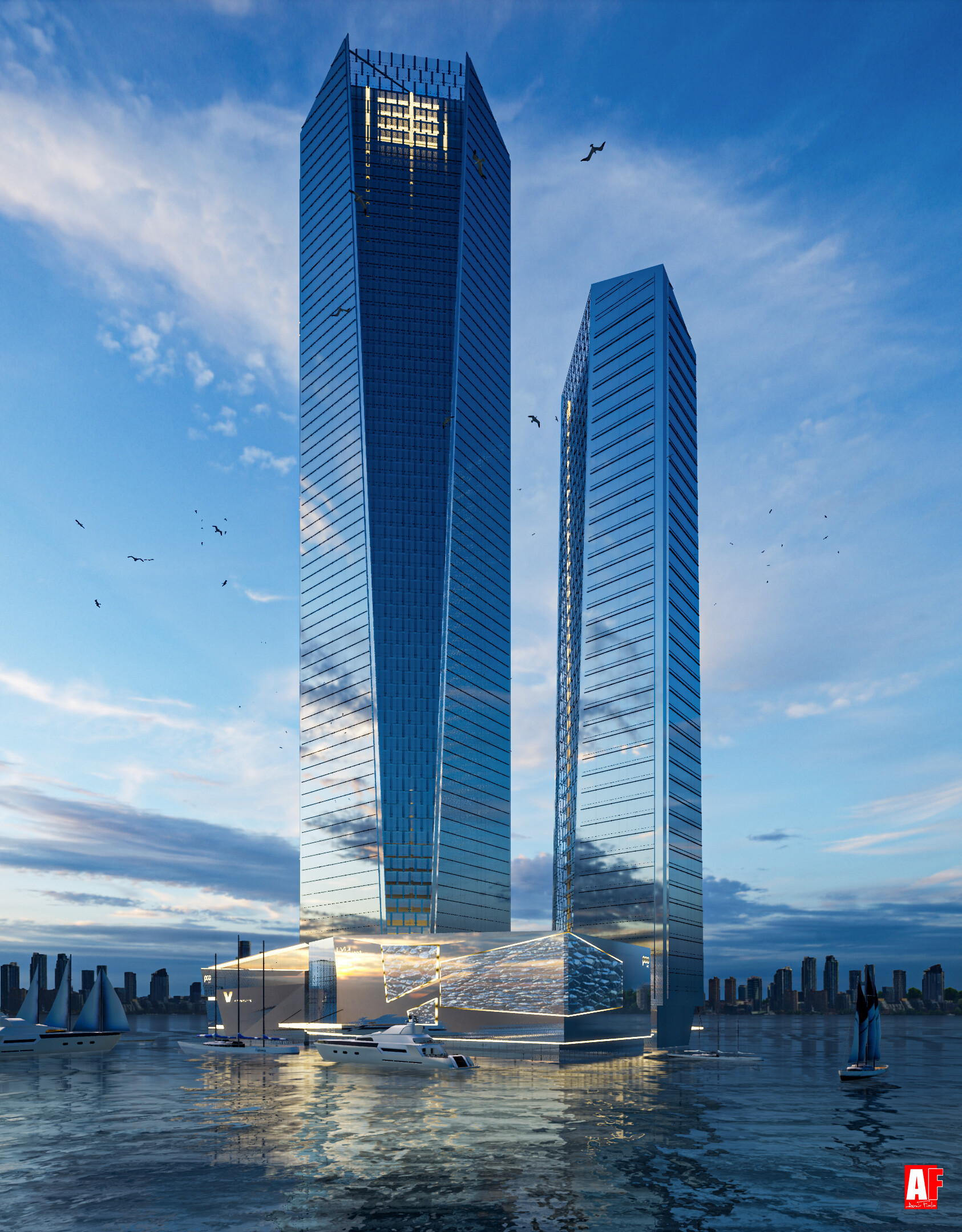 025-Exterior Scenes-High-Rise Buildings-Twin Towers - 3dshopfree