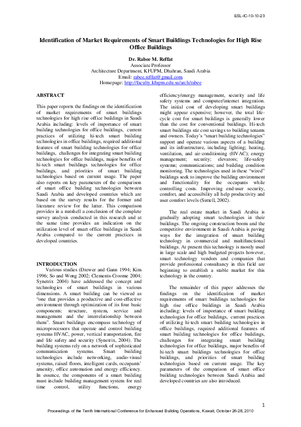 (PDF) Identification of Market Requirements of Smart Buildings ...