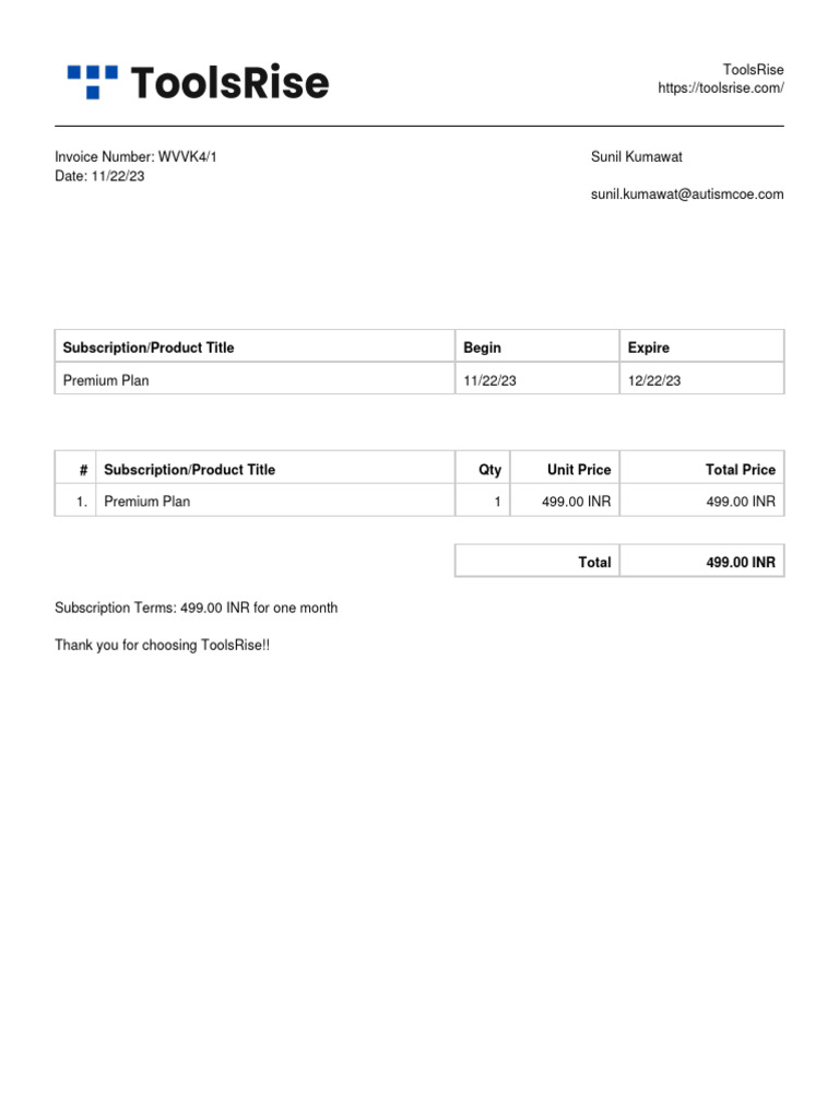 ToolsRise Invoice WVVK4 | PDF