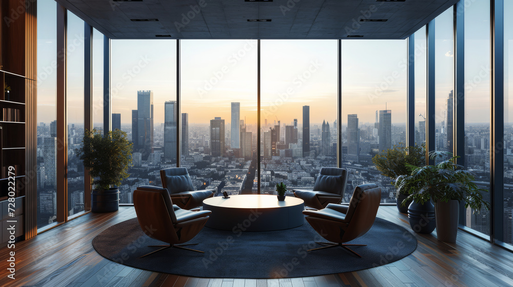 Luxurious High Rise Office Lounge with Modern Furniture and Panoramic ...