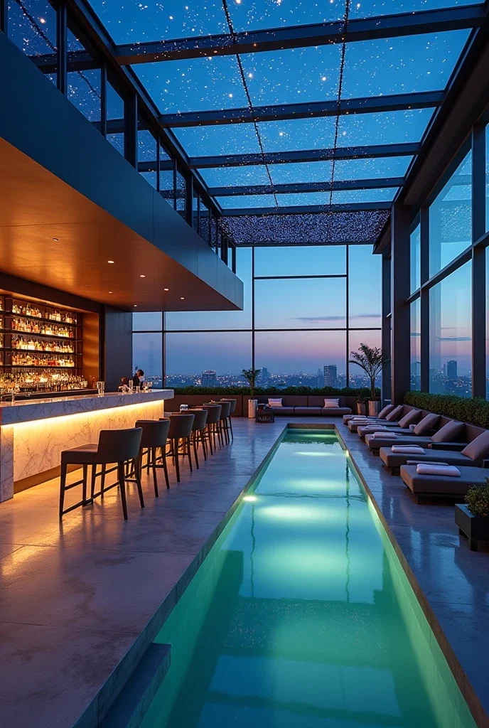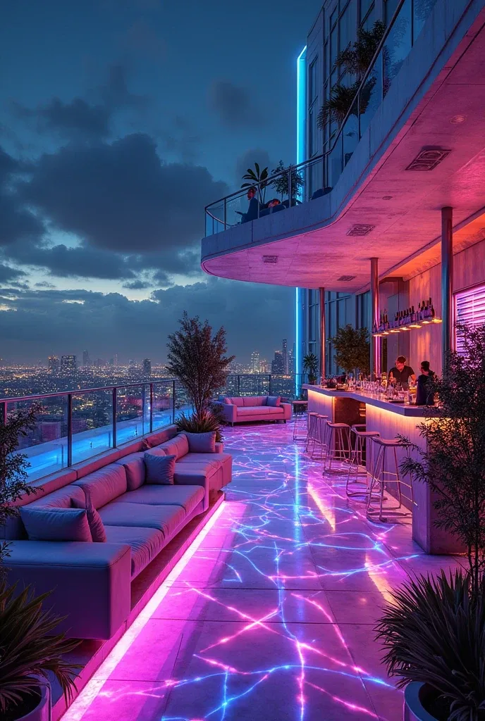 Premium AI Image | A mesmerizing image of a luxurious rooftop lounge ...