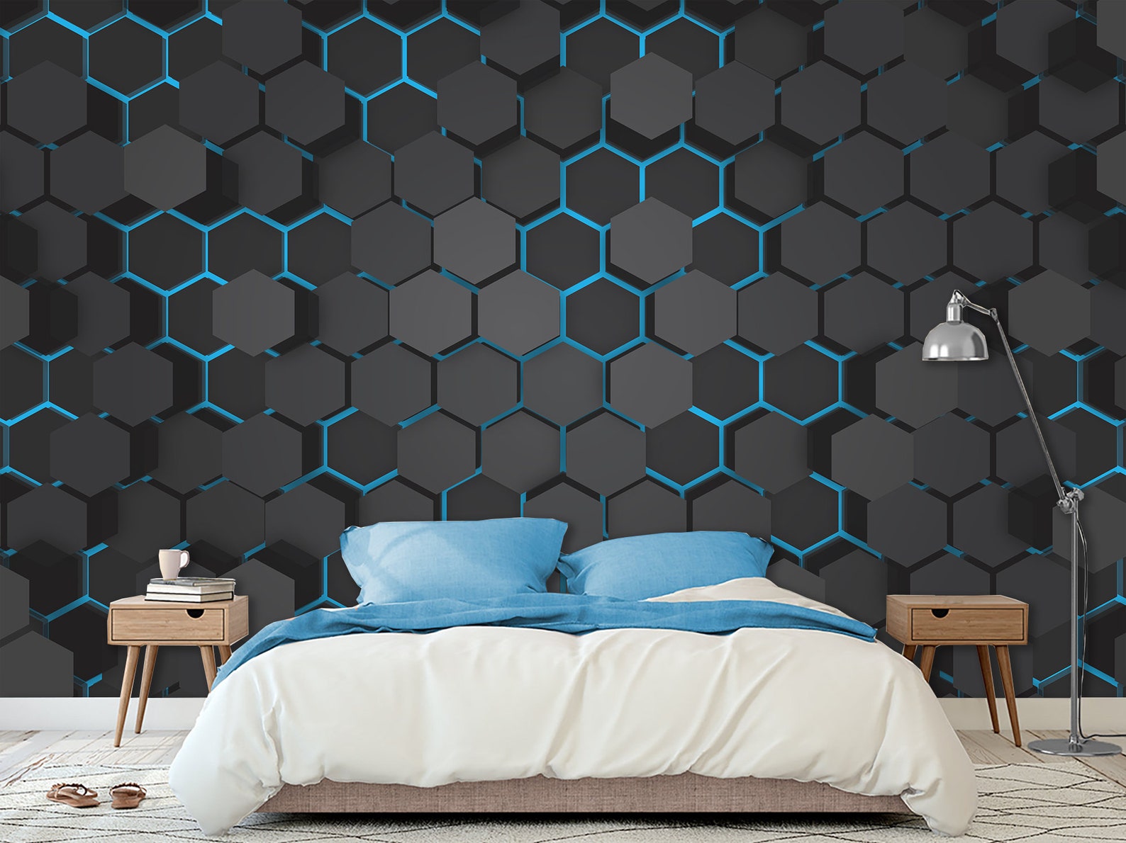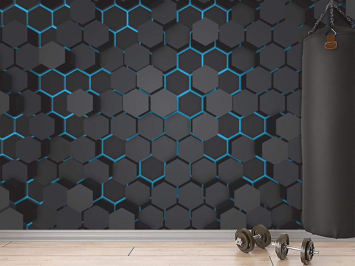 Hexagons Hi-tech Blue Wallpaper Abstract Geometric & Pattern - Etsy
