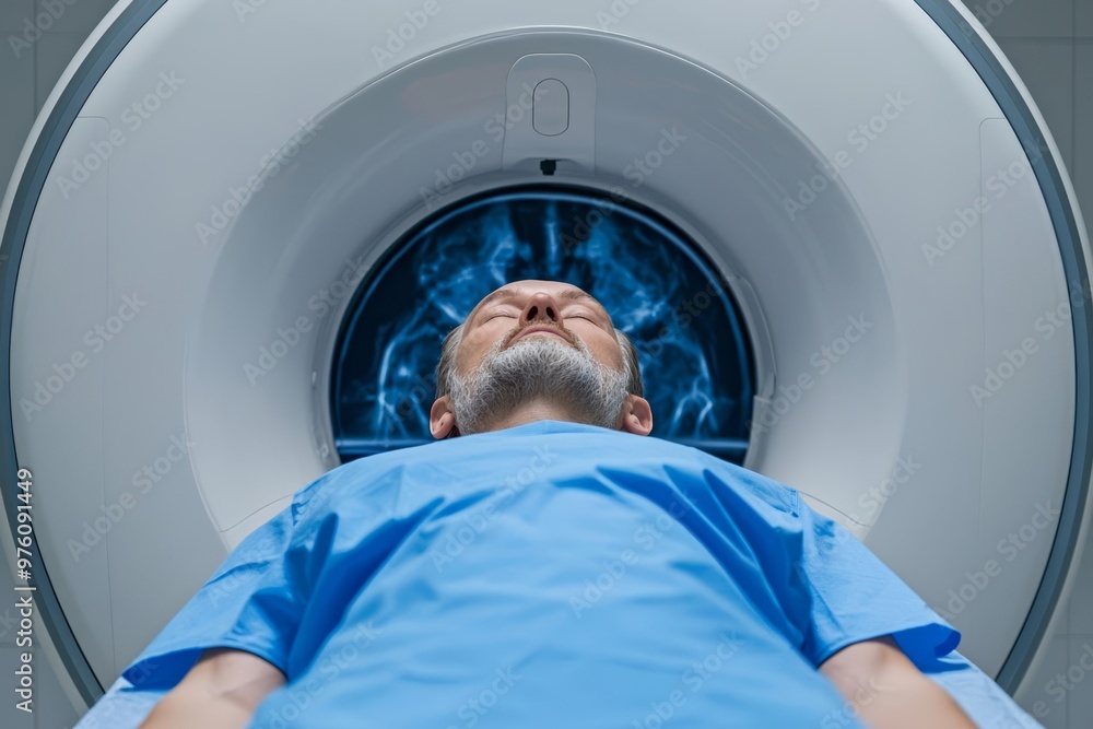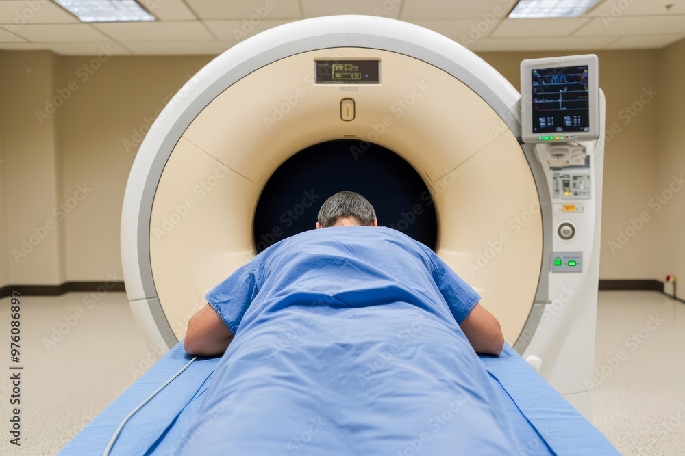 "Patient in clinical MRI machine undergoing full-body scan, high-tech ...