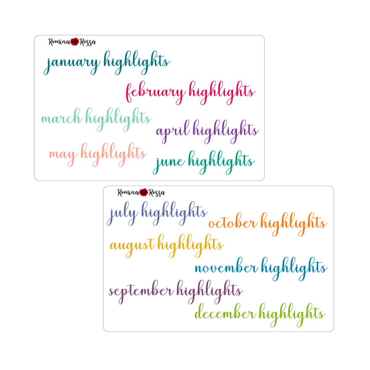 Monthly Highlights Script Stickers - Colorful & Black – Romina Rossa