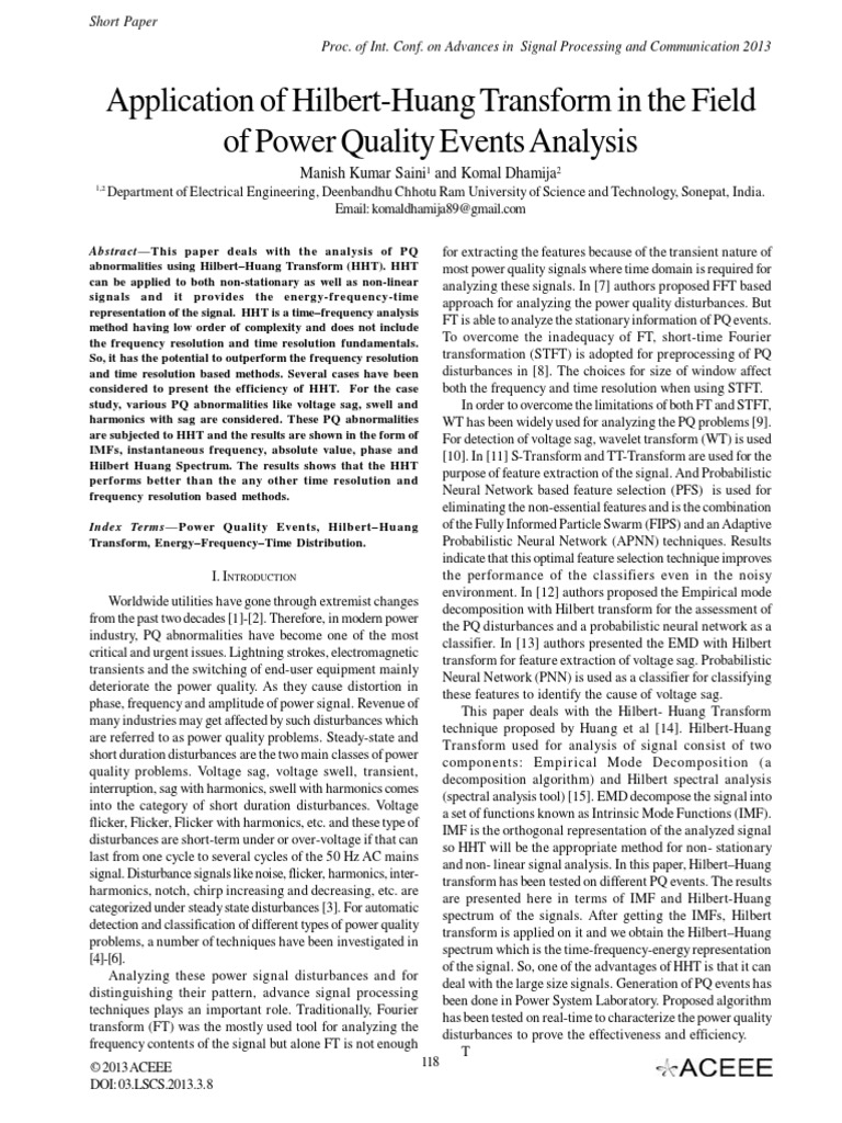 Application of Hilbert Huang Transform in The Field of Power Quality ...