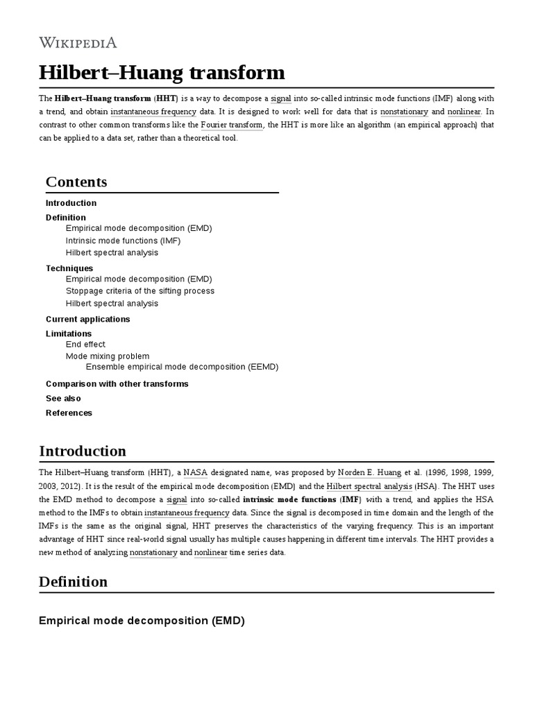 Hilbert Huang Transform | PDF | Applied Mathematics | Algorithms