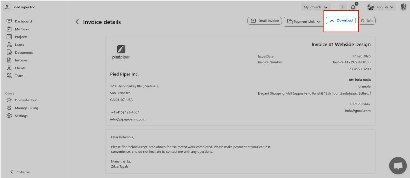 Manage Invoices - Highrise Help