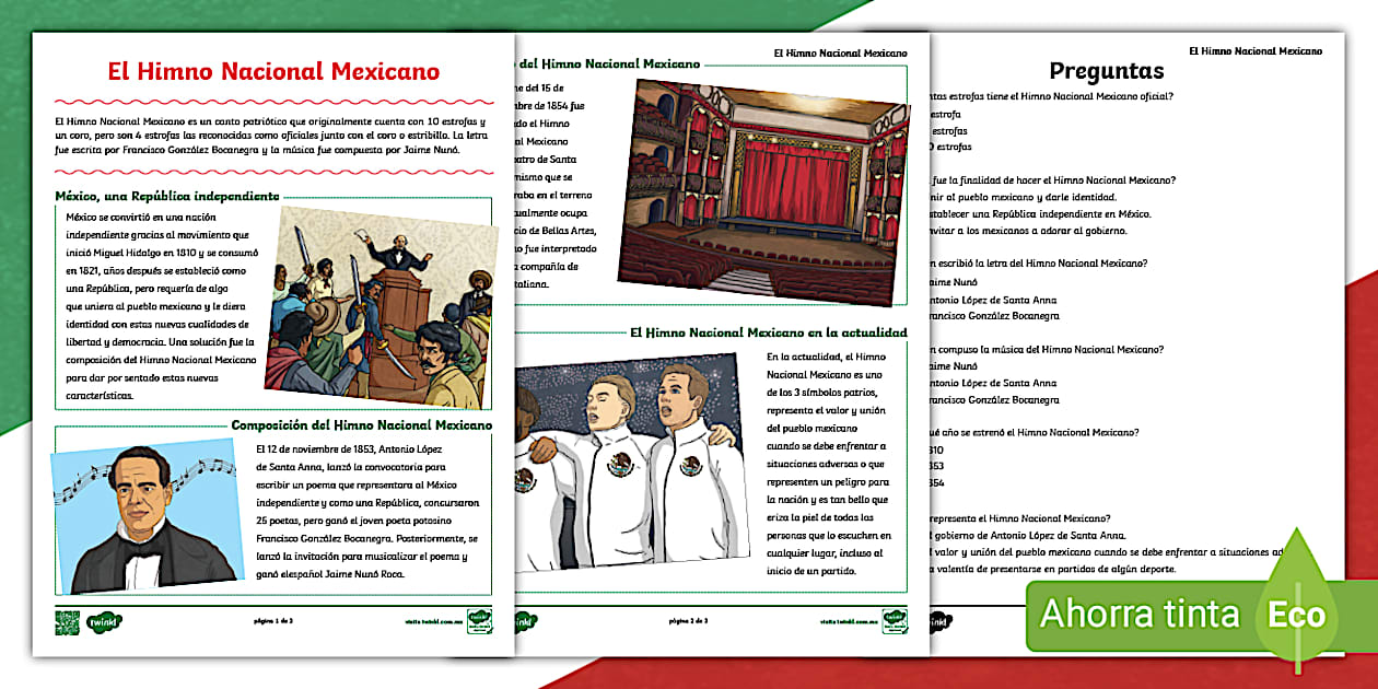 Himno Nacional Mexicano con letra completa en PDF - Twinkl
