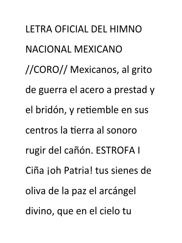 Letra Oficial Del Himno Nacional Mexicano | PDF
