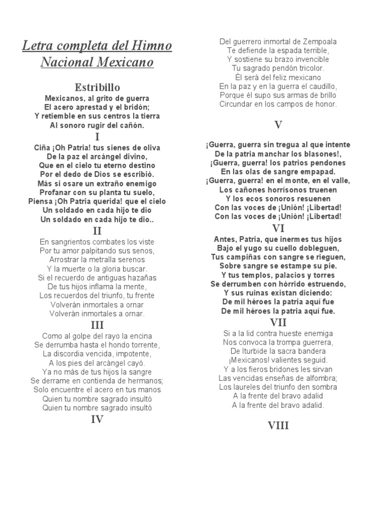 Letra Completa Del Himno Nacional Mexicano | PDF