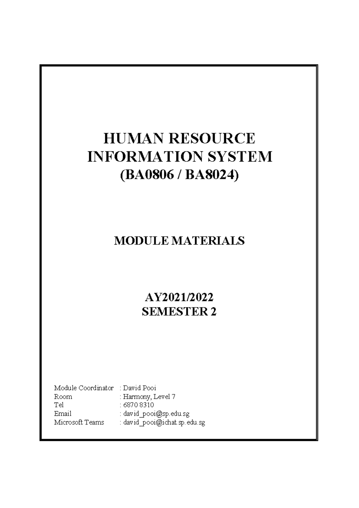 HRIS Module Overview - HUMAN RESOURCE INFORMATION SYSTEM (BA0806 ...