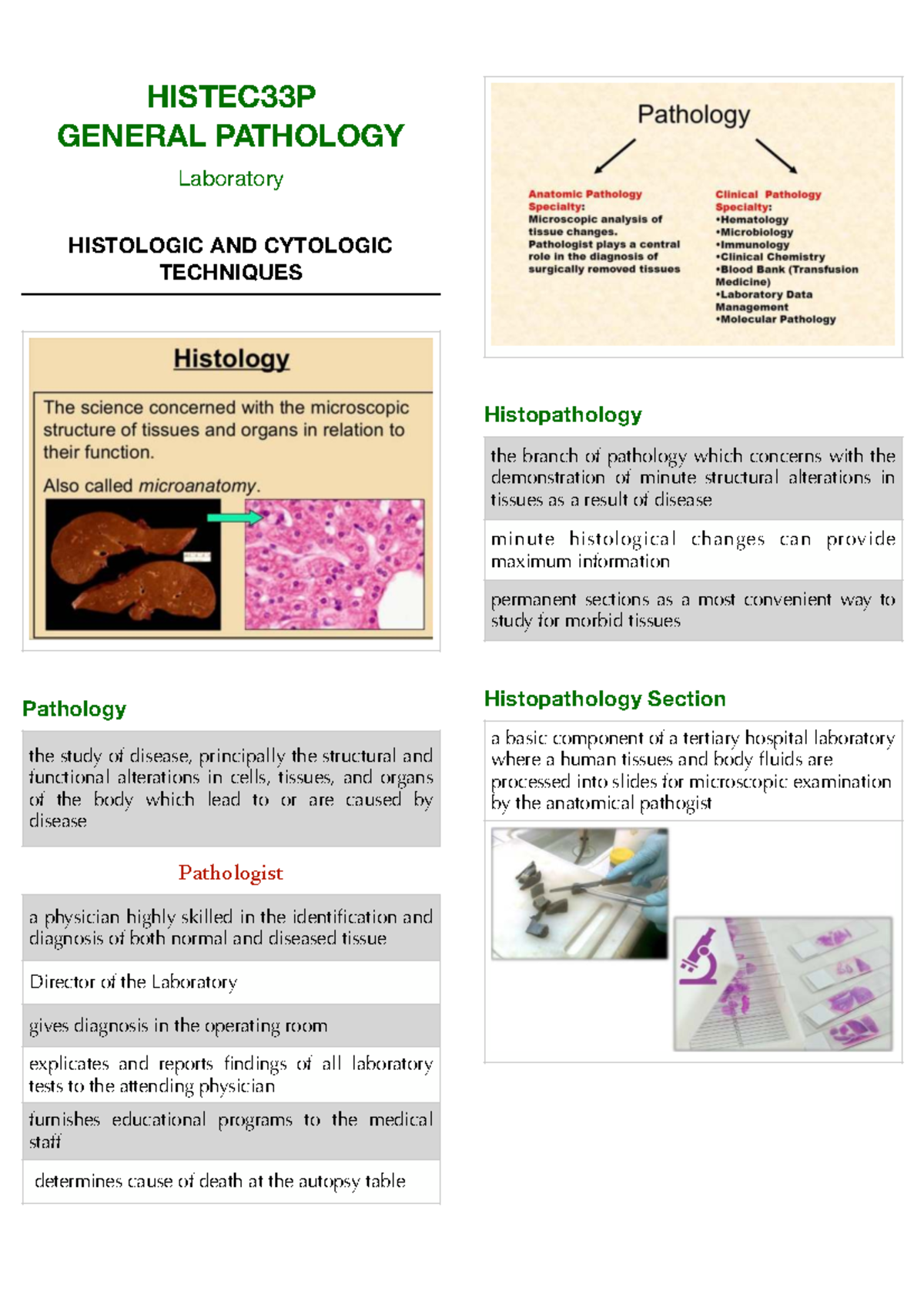 HISTEC33P General Pathology: Lab Techniques in Histopathology - Studocu