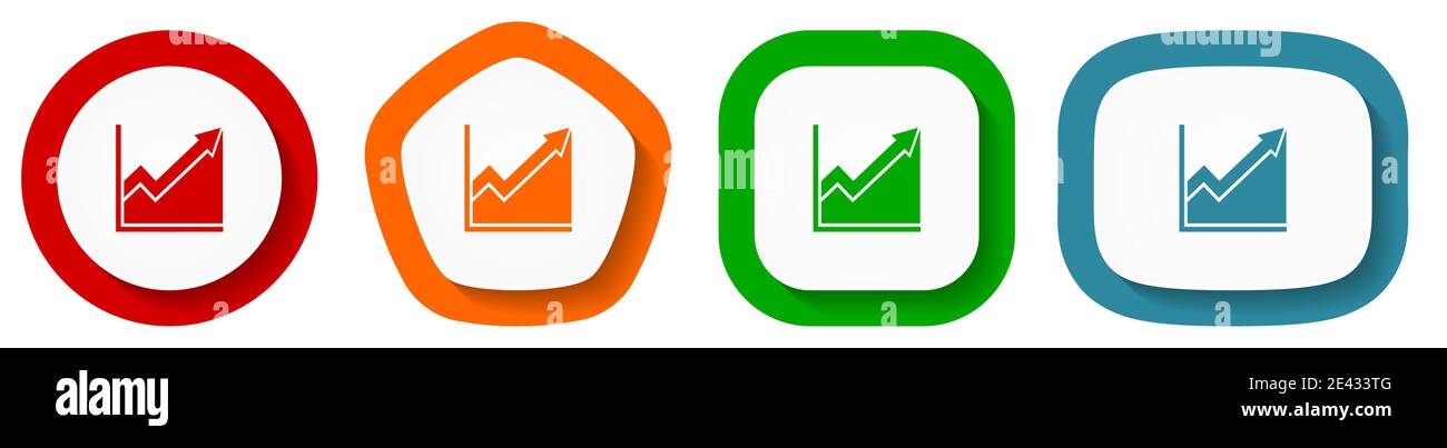 Histogram icon set, red, blue, green and orange flat design web buttons ...
