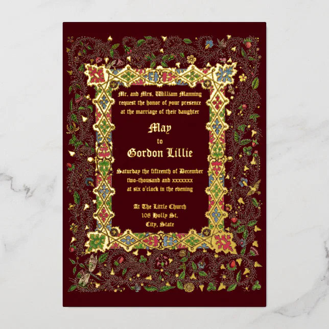 Elegant Victorian Era 1883 Medieval Style Wedding Foil Invitation | Zazzle