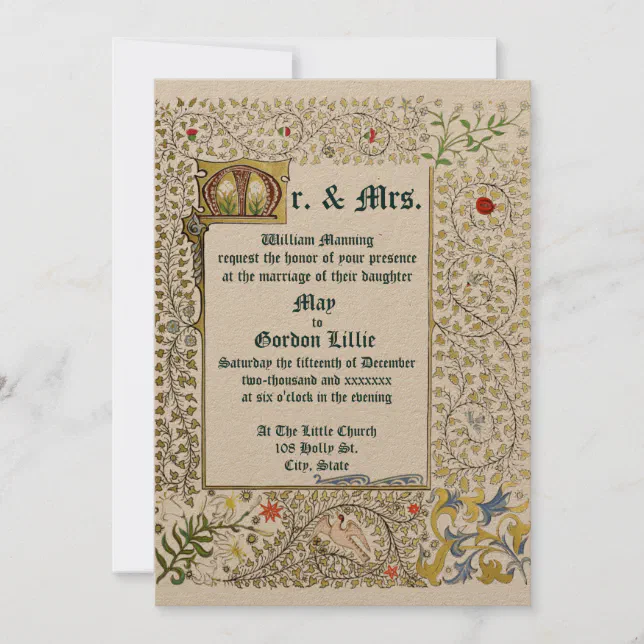 Victorian Era 1873 Medieval Style Wedding Invitation | Zazzle