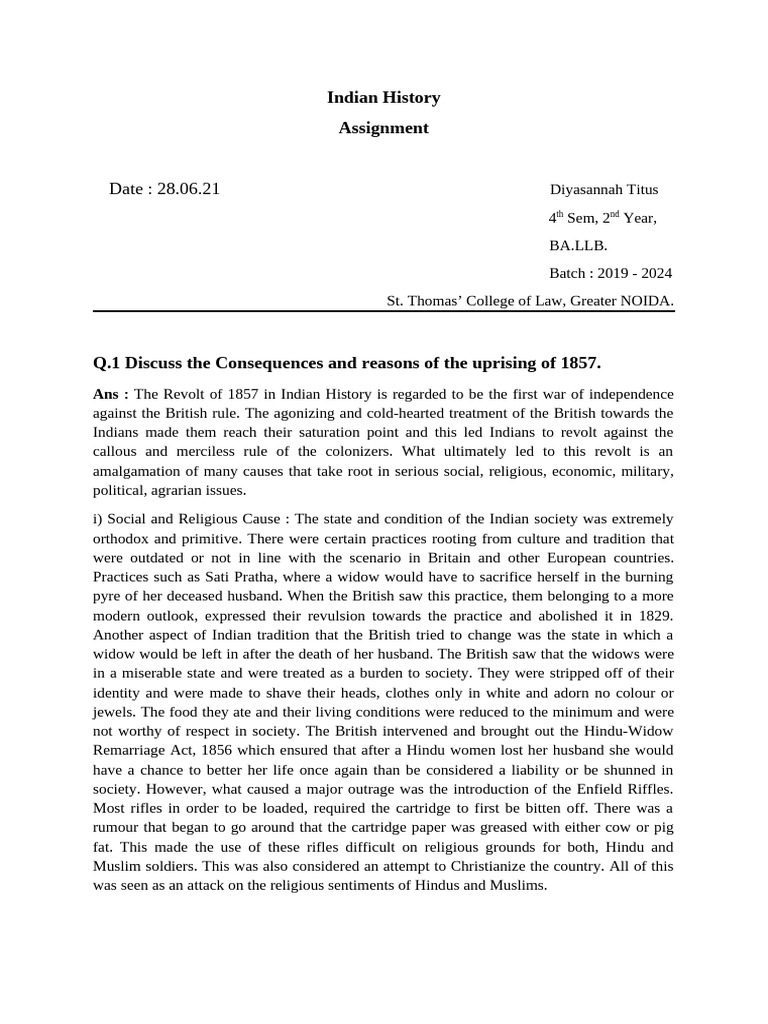 Indian History Assignment | PDF