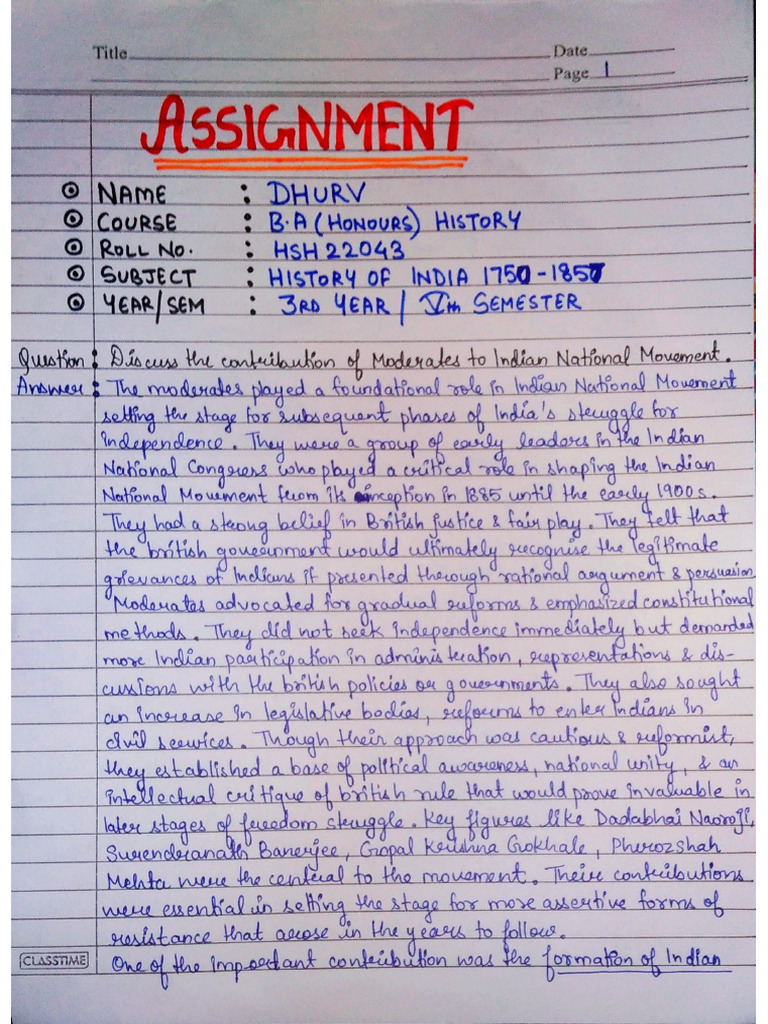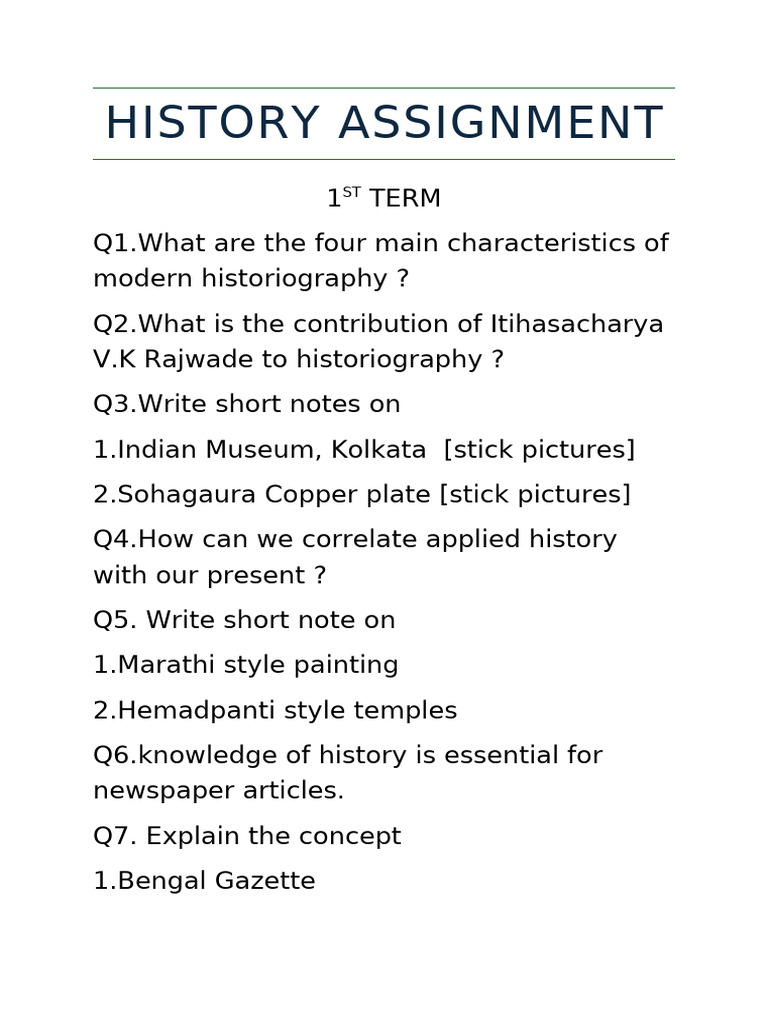 History Assignment Ba 1 yr | Assignments History | Docsity