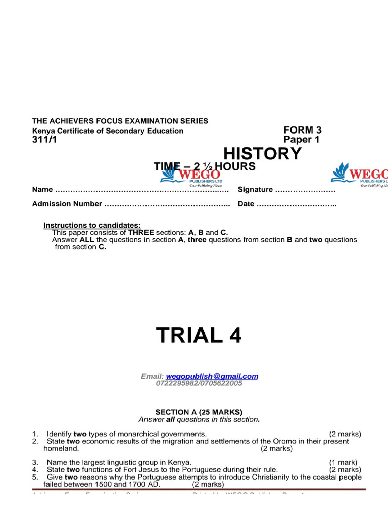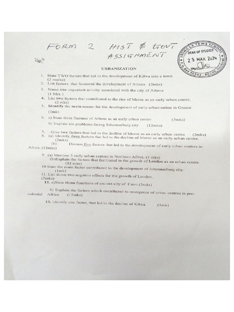 History Assignments - Form 3 - History | PDF