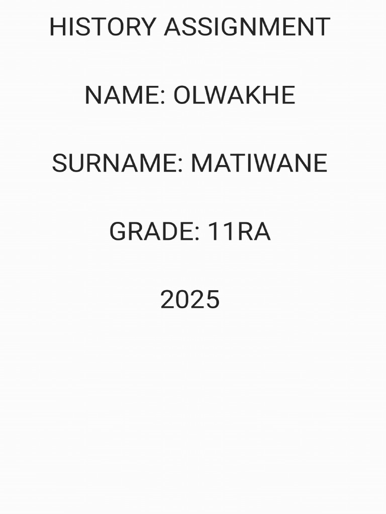 History Assignment - 1 NAME AND SURNAME: MAHLANGU SPHIWESIHLE GRADE: 12 ...