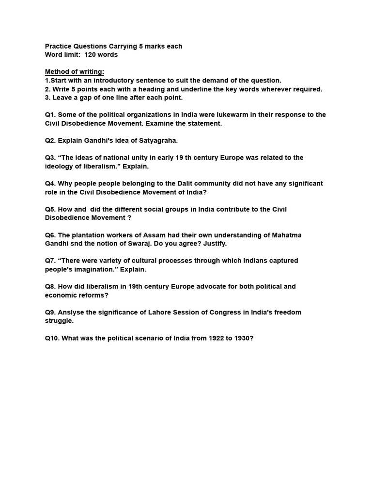 Assignment 1 History Class-X | PDF | Mahatma Gandhi | Indian Nationalism