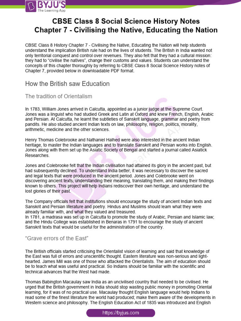 SOLUTION: Civilising the native educating the nation class 8 notes cbse ...