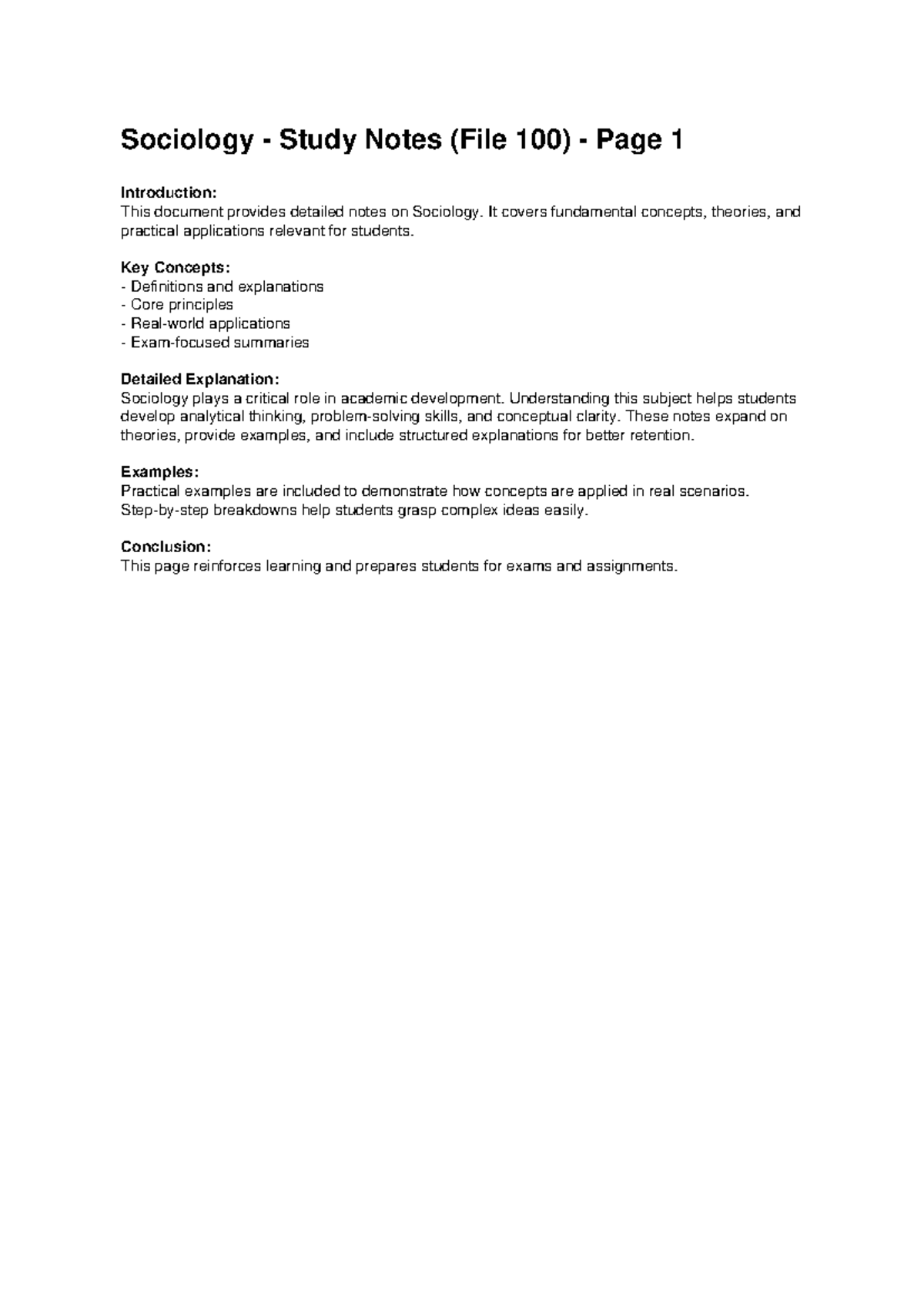 Sociology Study Notes (File 100) - Key Concepts & Theories - Studocu