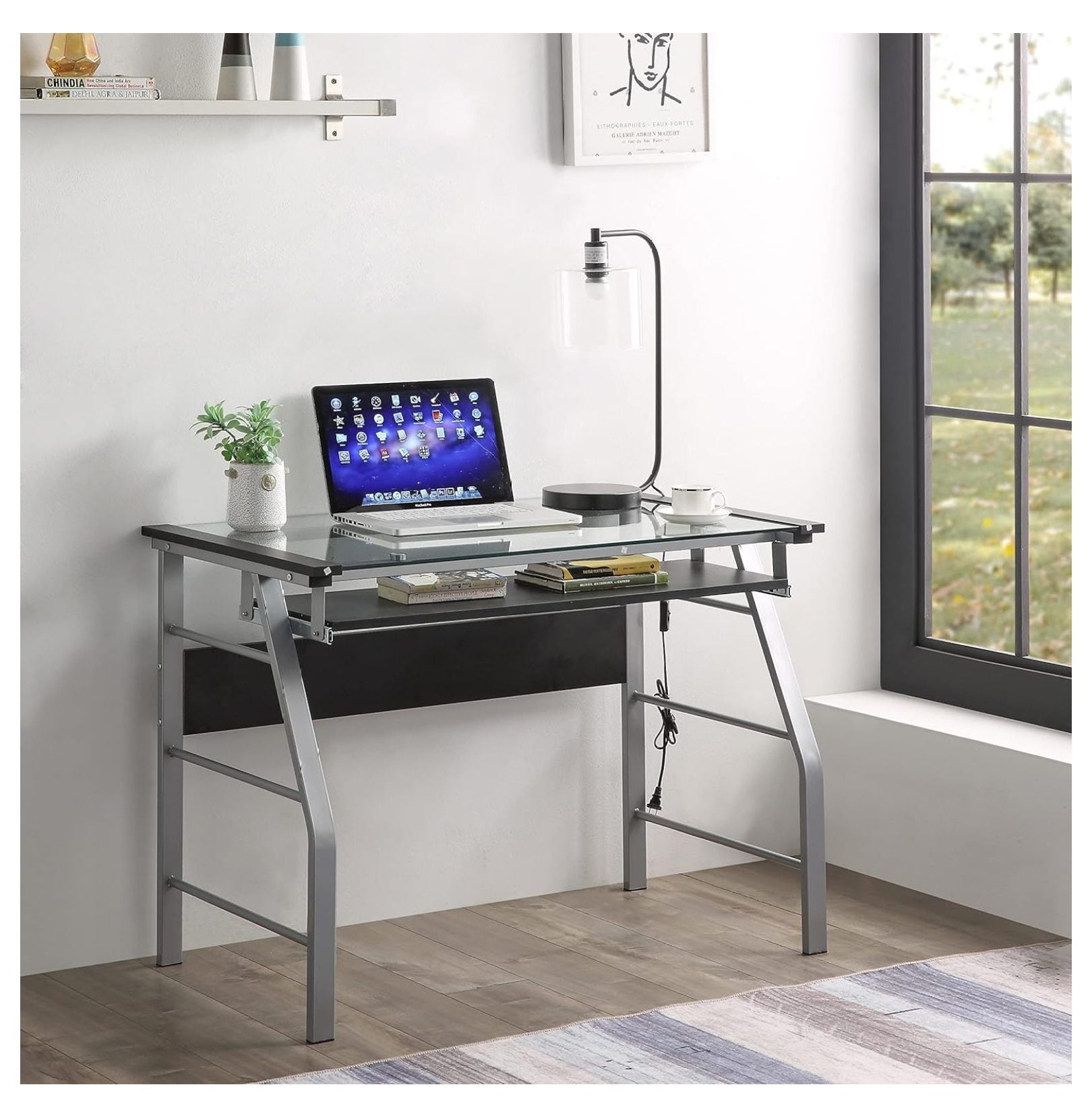 Tempered Glass-top Steel Frame Computer Desk (Glass), Silver | Metal ...