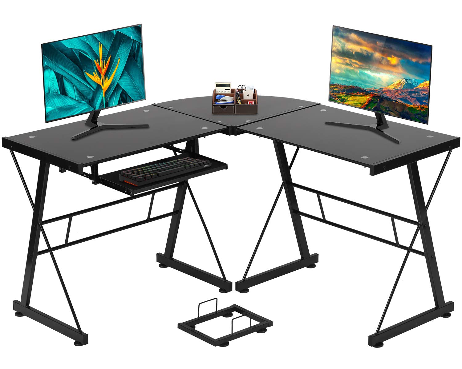 Ktaxon L-Shape Corner Computer Desk,PC Stalinite Glass Laptop Table ...