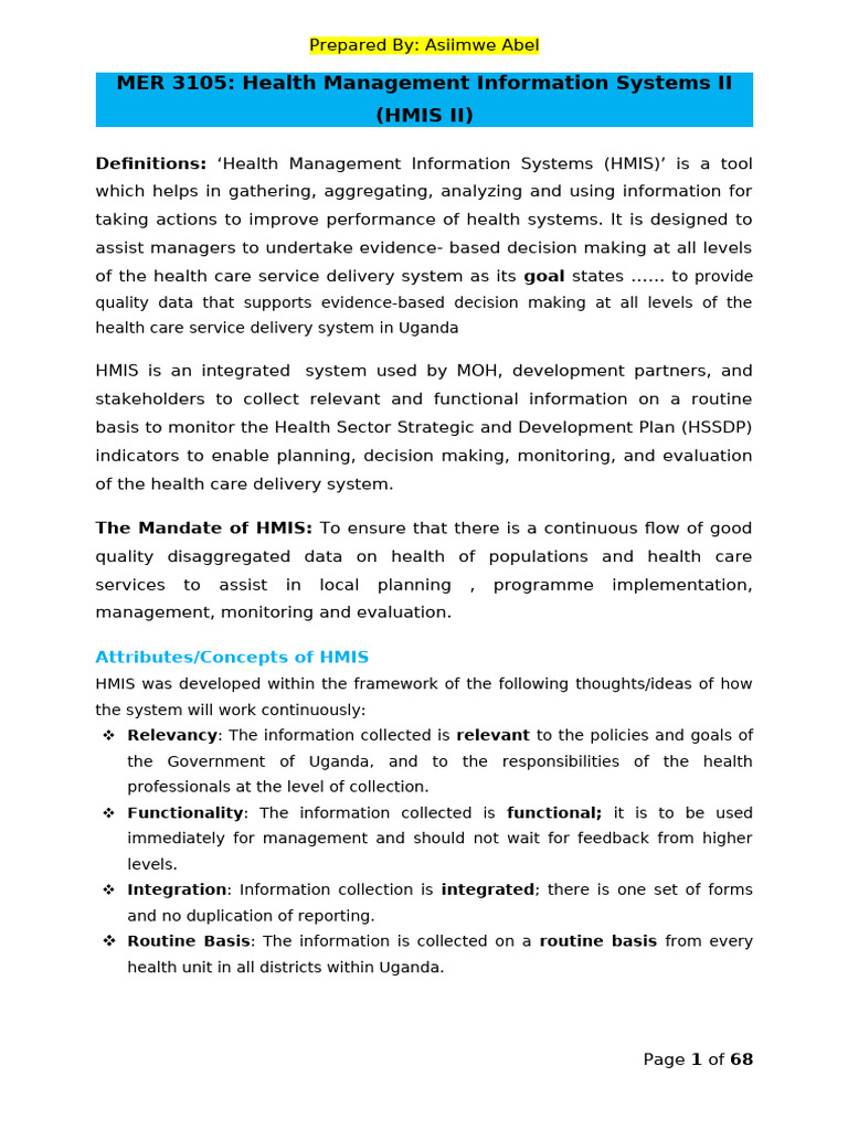 HMIS Lecture Notes: Introduction to Health Management Info Systems ...