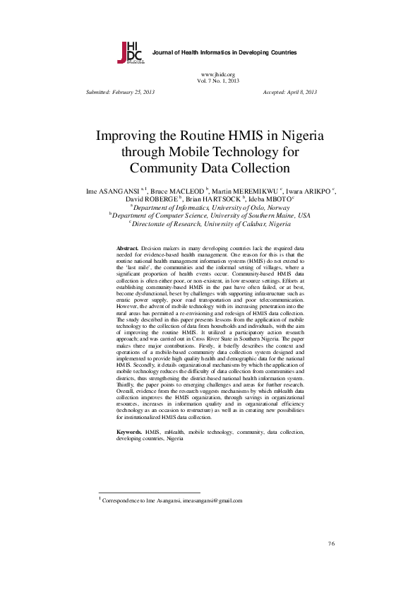 (PDF) Improving the Routine HMIS in Nigeria through Mobile Technology ...