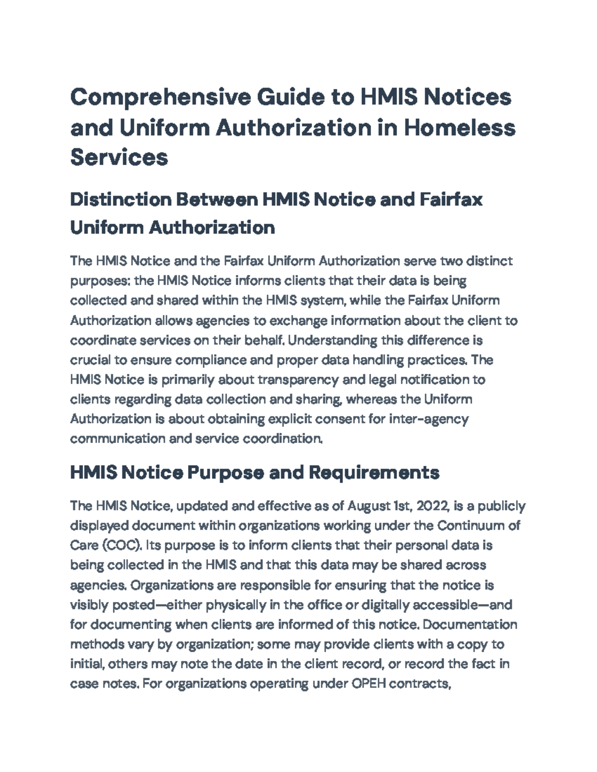 Comprehensive Guide to HMIS Notices & Uniform Authorization (OPEH ...