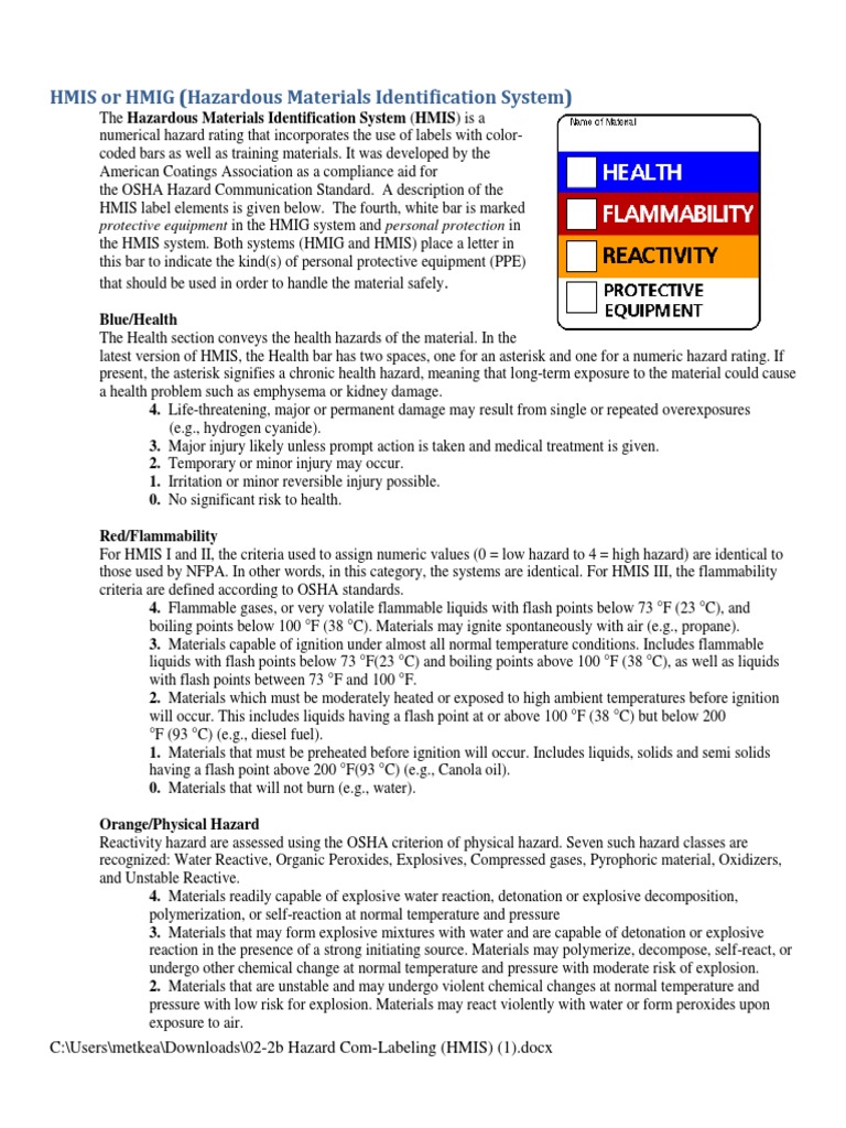 02 2b Hazard Com Labeling HMIS 1 | PDF | Explosive Material | Combustion