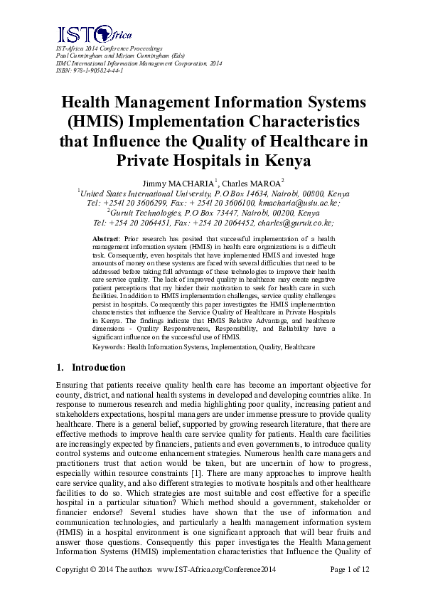 (PDF) Project Management for HMIS Implementation and Operation ...
