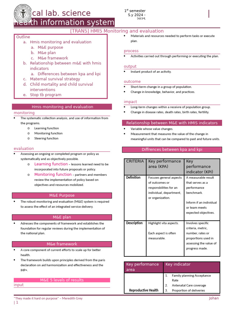 HMIS Monitoring and Evaluation: Key Frameworks and Functions | Course Hero