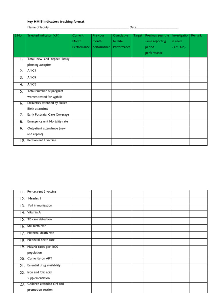 HMIS Key Indicators Tracking Template | PDF | Immunology | Medicine