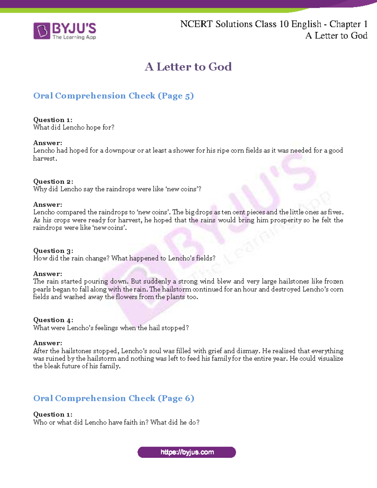 NCERT Solutions Class 10 English Chapter 1: A Letter to God Analysis ...