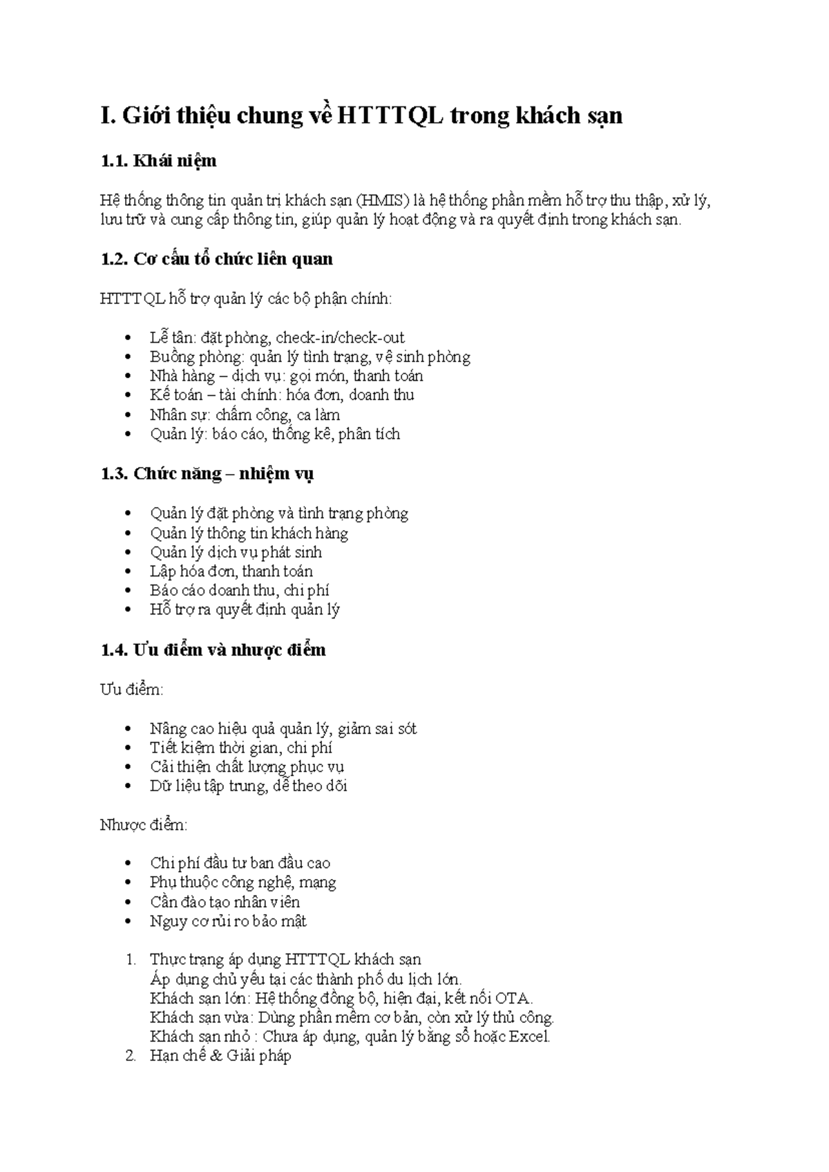 Tài liệu - Hệ thống thông tin quản trị khách sạn (HMIS) - Studocu