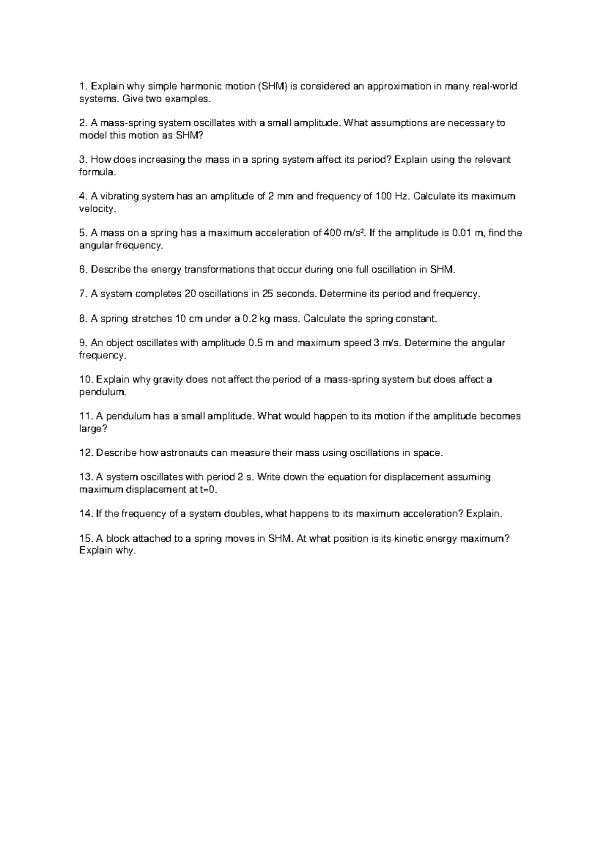 SHM Practice Questions: Understanding Simple Harmonic Motion Concepts ...