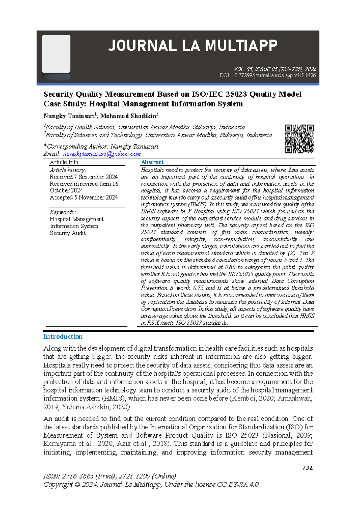 Security Quality Assessment of HMIS Using ISO 25023 Standards - Studocu