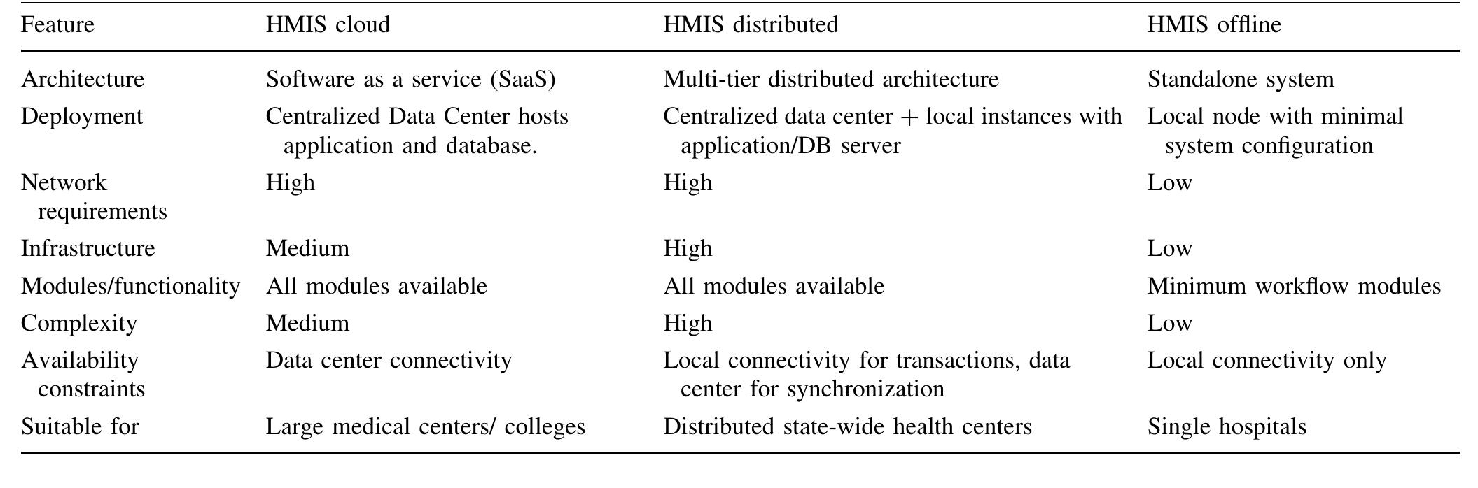 A comparison of existing hmis architectures with the