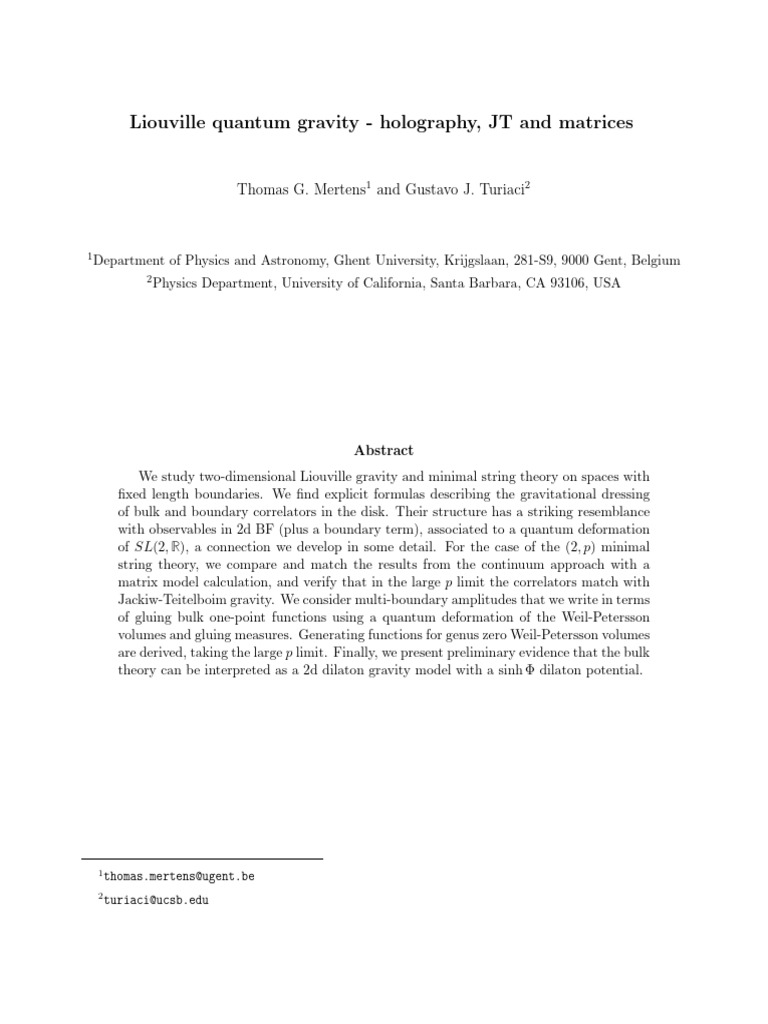 Liouville Gravity and JT Holography | PDF | String Theory | Quantum ...
