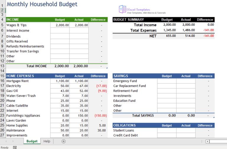 Household Budget Planner | Free Budget Spreadsheet for Excel