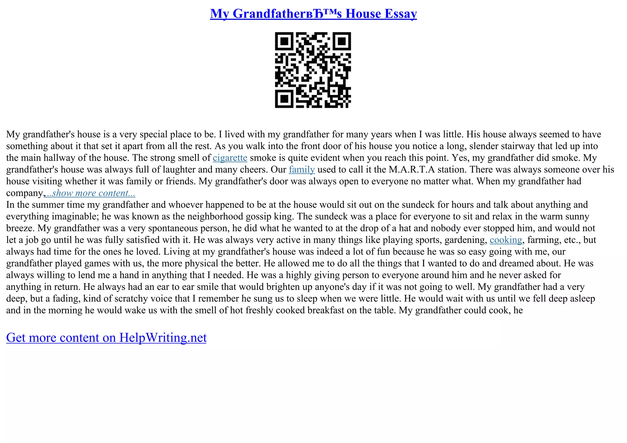 My Grandfather’S House Essay | PDF