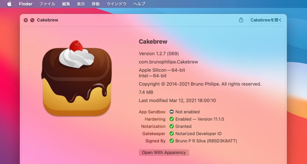 パッケージマネージャーHomebrew用GUIクライアント「Cakebrew」がApple Siliconに対応。