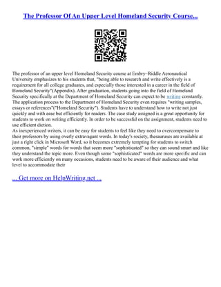 The Professor Of An Upper Level Homeland Security Course... | PDF