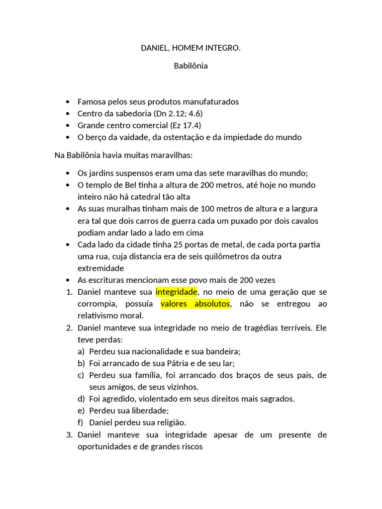 DANIEL, HOMEM INTEGRO | PDF | Daniel (personagem Bíblica) | Sadraque ...