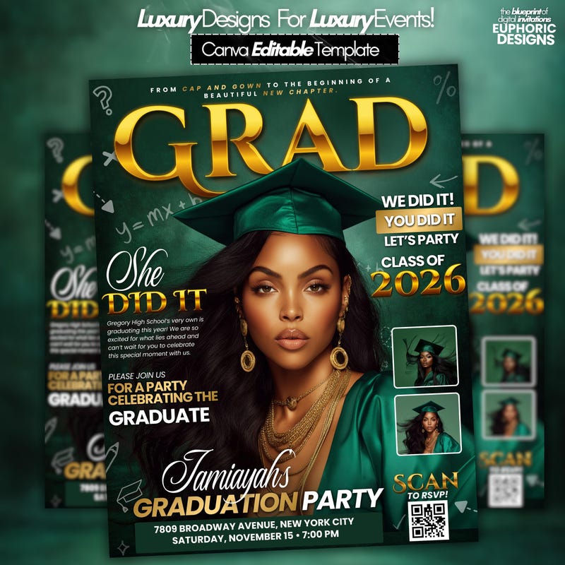 Graduation Magazine Template, Gradannouncement Template | Modern Grad ...
