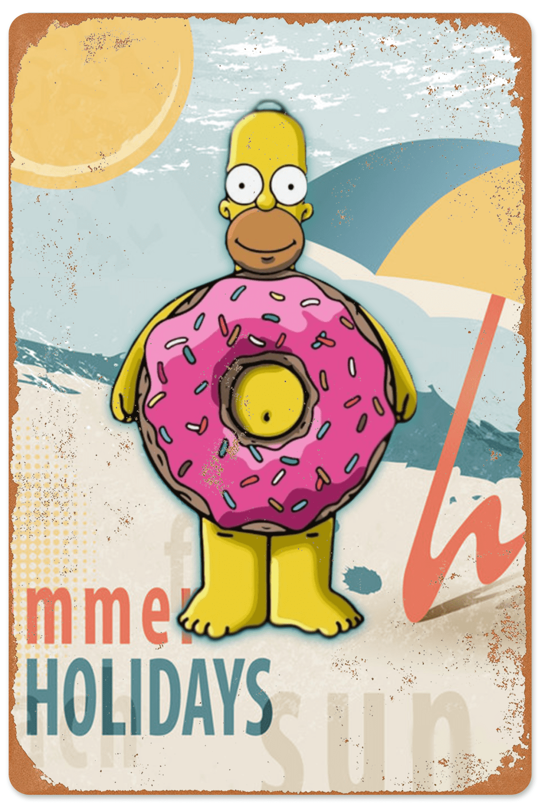 Vintage Homer Simpson Swimming Tin Sign Hello Summer Holiday Metal ...