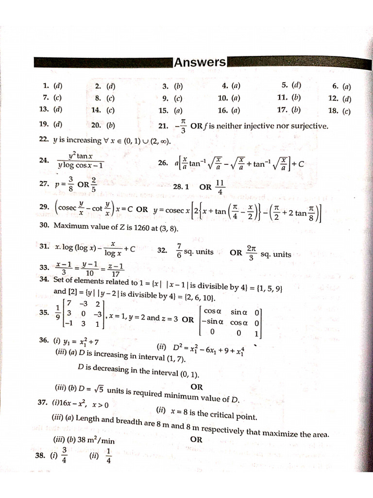 Maths Class 12 Answer Key 6 | PDF